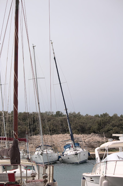 22.3. Ober herum wäre jetzt alles zum Streichen vorbereitet. Unten müssen noch ein paar Stellen gespachtelt werden und dann könnten wir auch Antifouling streichen. Hoffentlich gibt es morgen ein paar Regenpausen. Angesagt ist Sturm und Dauerregen. Gegessen haben wir auch heute wieder bei No5 - drei Pizzen.