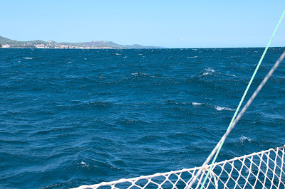17.7. heute haben wir Zadar verlassen und sind weitergezogen in die Bucht zwischen Pasman und Ugljan. Es war wieder ziemlich wellig (ca. 2m), aber wir sind recht flott mit den Wellen und dem Wind gesegelt (nur gerefftes Vorsegel und immer zwischen 5 und 6 Knoten). Auch in der Bucht ist der Wind noch überraschend stark, aber die Wellen sind wir wenigstens los.