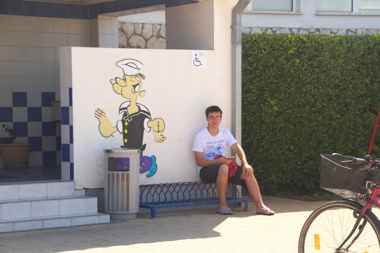 31.7.: Heute hängen wir bei Zman am Anker. Davor sind wir bei Gegenwind hier her gekreuzt. Hier ist heuer recht viel los, der Steg ist voll belegt und 7 Segelboote ankern in der Bucht. Zman ist der erste Ort seit langer Zeit, den wir von vorherigen Urlauben kennen.