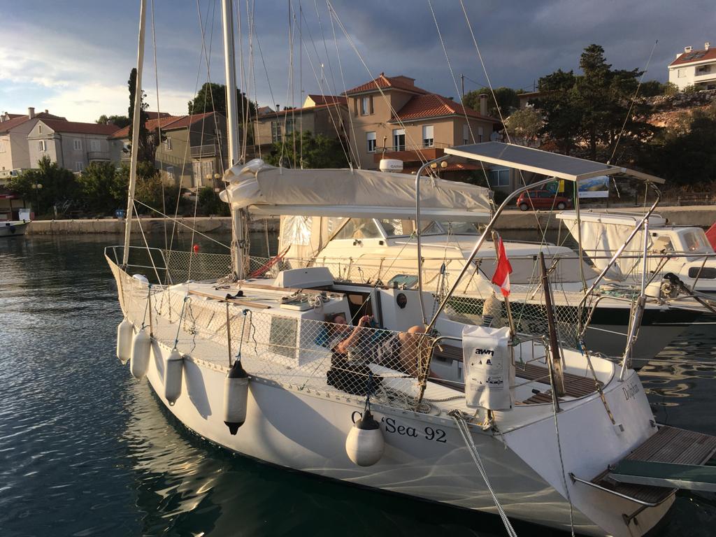 5.7. Heute sind wir bei lästigem Wind von Ist nach Olib gefahren. Der Wind war böhig und hat dauernd gedreht. Hohe Wellen gab es dazu auch. Daher sind wir einen Großteil der Strecke mit Vorsegel und Motor gefahren. Kurz vor unserem Ankerplatz haben wir Delphine gesehen. Die sind eine Zeit lang neben uns mitgeschwommen. Es waren 3 Delphine, 2 Große und ein Kind. Morgen geht es zurück nach Simuni und übermorgen ganz nach Hause.