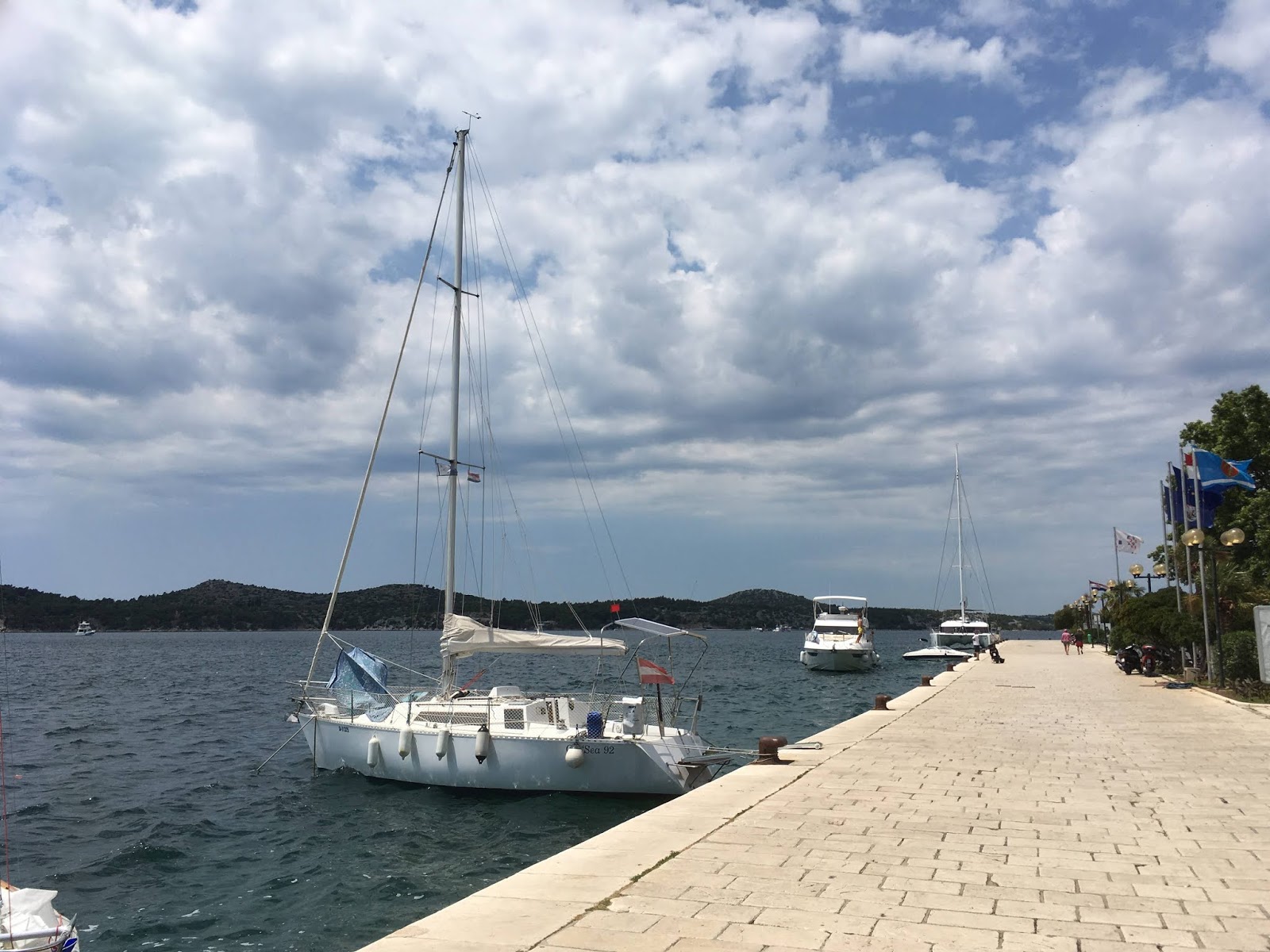 30.6. Heute sind wir den oberen Teil der Kornaten durchsegelt und dann in Sali gelandet. Hier ist recht viel Betrieb und zwei steirische Boote liegen neben uns. Der nördliche Steg ist voll belegt.
